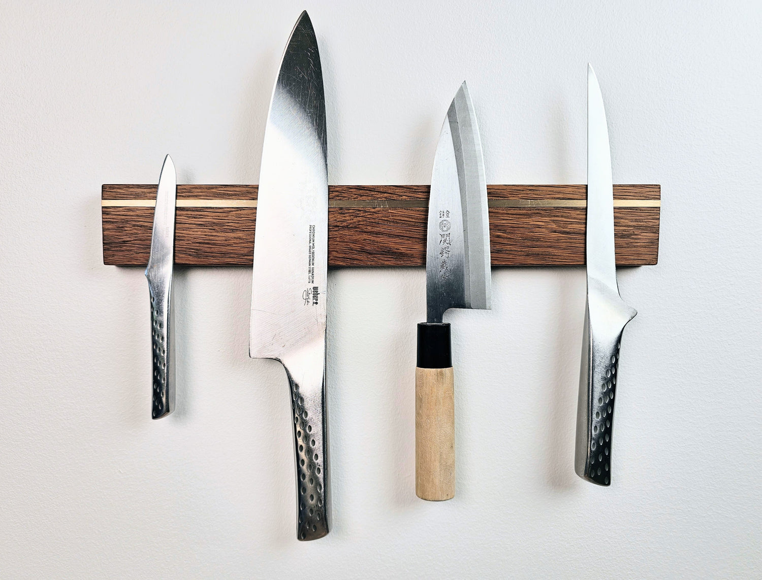 Vores smukke knivholder Atlas gør dit køkken flottere og mere praktisk. Atlas er magnetisk og har ilagt en stribe messing.